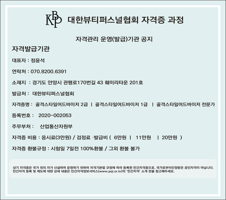 ✓ 资格证发放费用:14万韩元